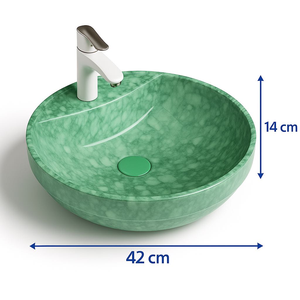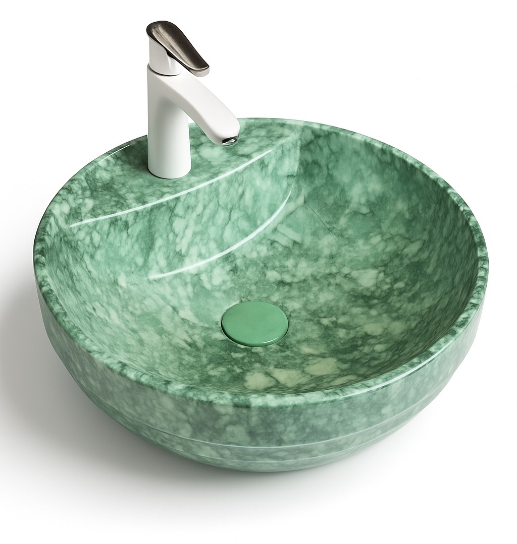 ครบชุด! อ่างล้างหน้าทรงกลมสไตล์มินิมอล รุ่น B-8590-M114 สีเขียวพาสเทลลายหินอ่อน มาพร้อมก๊อกน้ำทันสมัยในตัว ติดตั้งง่ายและประหยัดเวลาในการเลือกอุปกรณ์เสริม เหมาะกับห้องน้ำสไตล์โมเดิร์น มินิมอล หรือคอนเทมโพรารี ให้ความรู้สึกผ่อนคลายและหรูหราในเวลาเดียวกัน